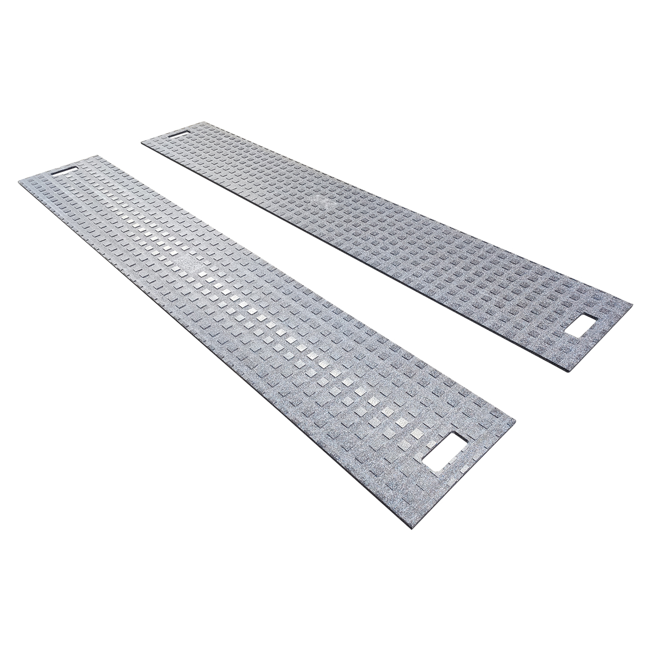 Alle unsere 1,0 Meter breiten Fahr- und Wegeplatten haben an beiden Enden je zwei Tragegriffe.